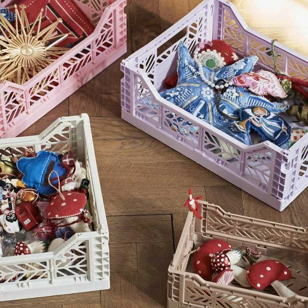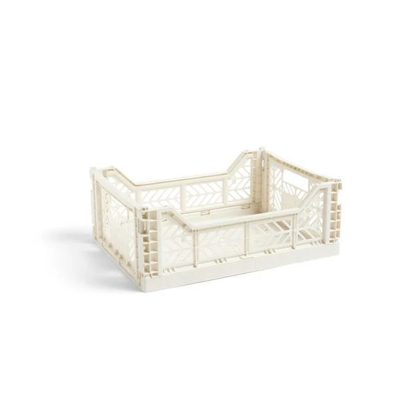 La cagette couleur blanc, taille M de la marque Hay. En plus d’être design, ces cagettes en polypropylène sont multifonctions. Elles ont un système d’aération, qui leur permettent de résister à l’eau. Repliables sur elles-mêmes, elles peuvent aussi bien s’empiler. Elles s’intègreront parfaitement dans toutes les pièces de votre intérieur et peuvent servir aux petits comme aux grands. Disponible en différentes couleurs et tailles, n’hésitez pas à les combiner. Découvrez toute la gamme de cagettes Hay. Dimensions : longueur : 26,5 cm, largeur : 17 cm, hauteur : 10,5 cm Composition : polypropylène Poids : 180 g L’avis de l’Atelier Kumo : un indispensable pour organiser votre intérieur et un nouveau coloris qu’on adore !