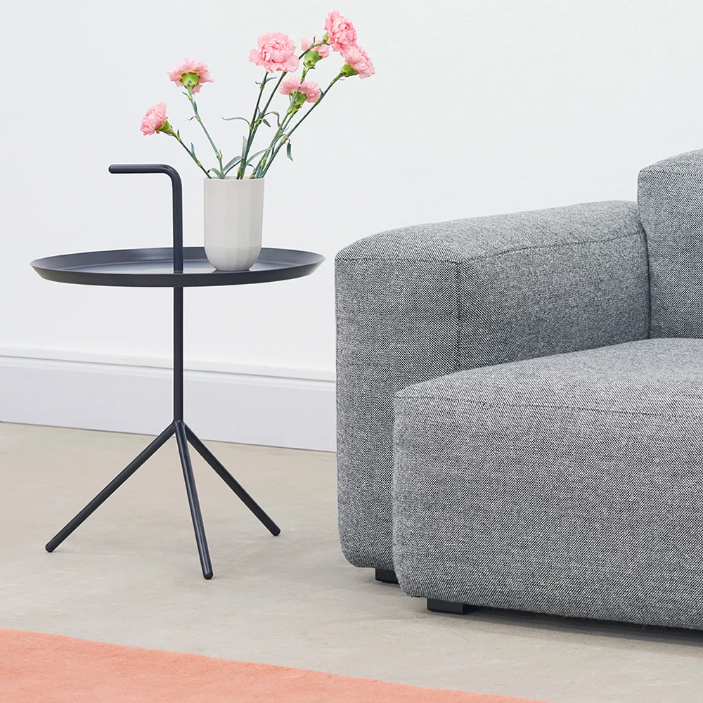 Thomas Bentzen’s portable side table is aptly named ‘Don’t Leave Me’. Abbreviated to DLM, it features a convenient handle that allows the metal table to be carried from room to room. Although it has a lightweight and portable structure, the three slanted legs provide great stability. Available in two sizes, the DLM and DLM XL make functional alternatives to traditional coffee tables. Suitable for inside use in most home or office environments.