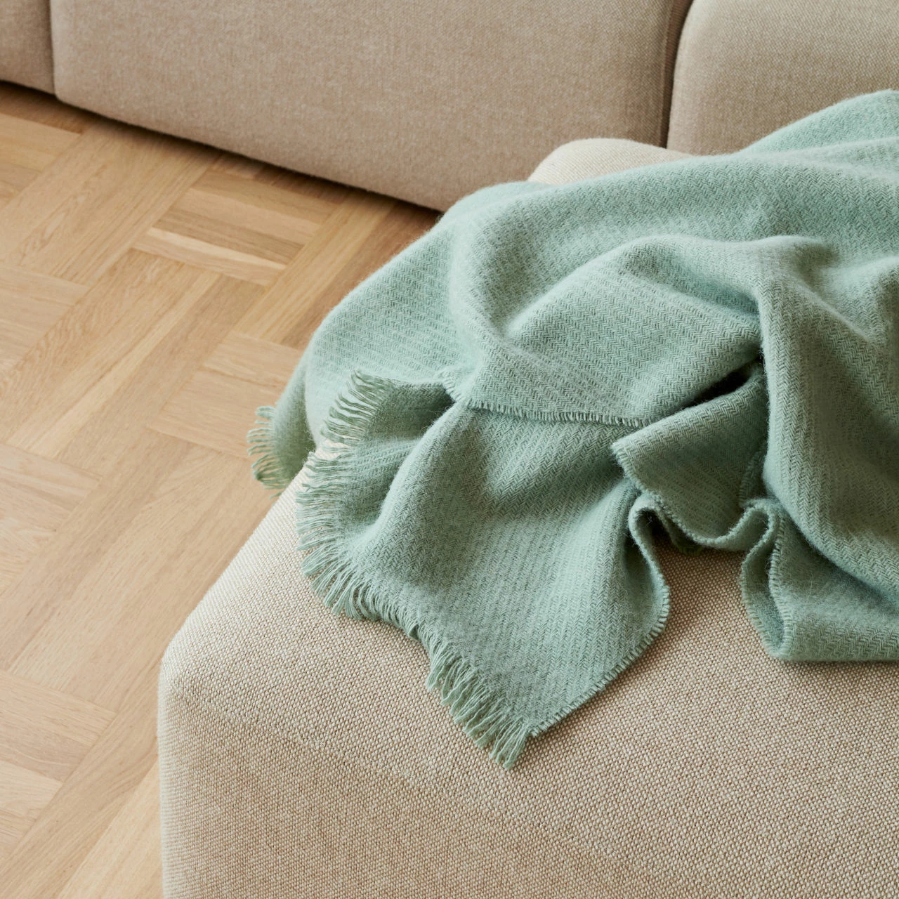 This single colour blanket by Danish homewares brand HAY is made from 100% new wool and is woven in Lithuania. The verdigris green is a really comforting pistachio green tone and the weave pattern gives it a suitable step or diagonal line pattern.