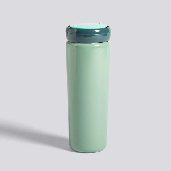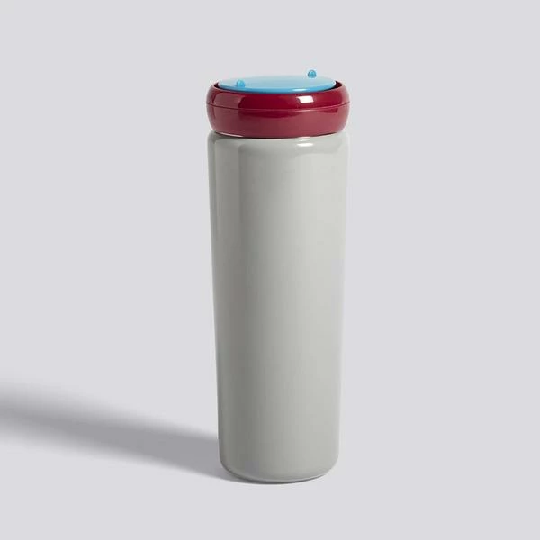 Travel cup diseño de George Sowden, uno de los genios del grupo Memphis, para HAY, acero inoxidable y tapón de plástico. Ideal para transportar bebidas con estilo. Apto para bebidas frias y calientes. Capacidad 0.50 L. 8 x 22 cm. Disponible en 2 combinaciones de colores.