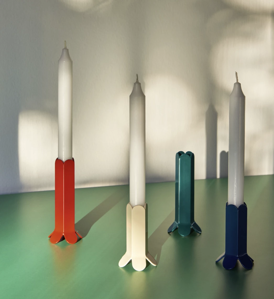 Made in aluminium and steel, Arcs Candleholder is available in two heights with different colour options.