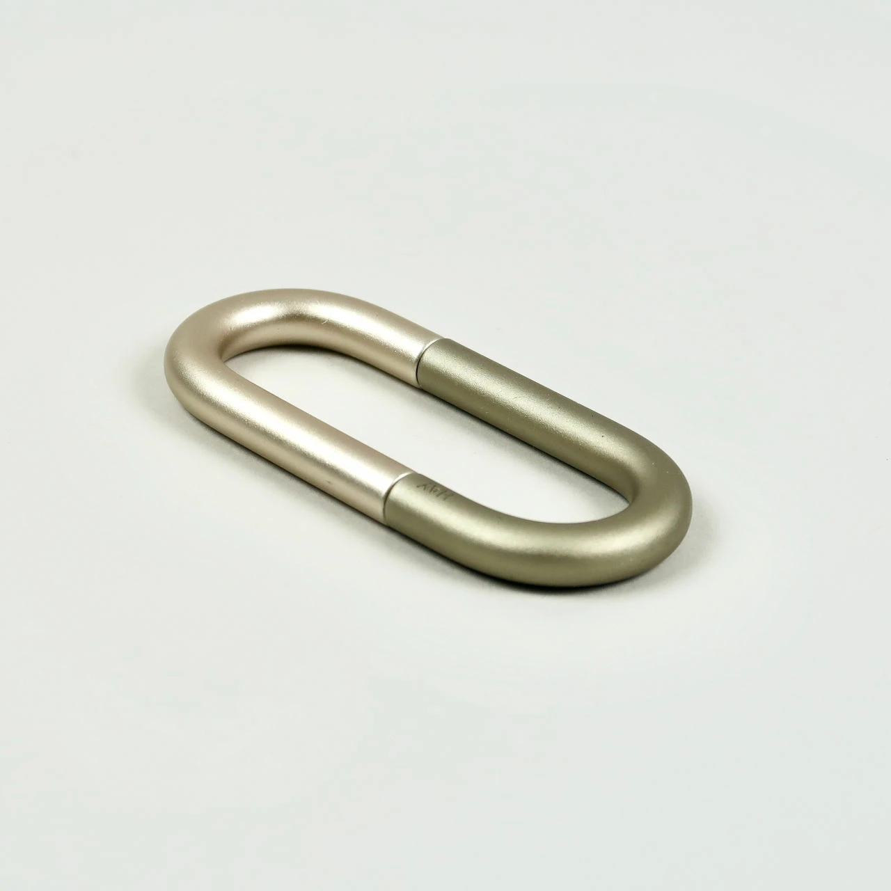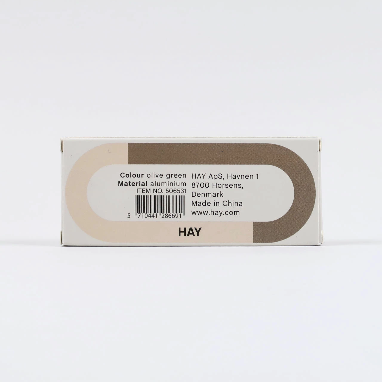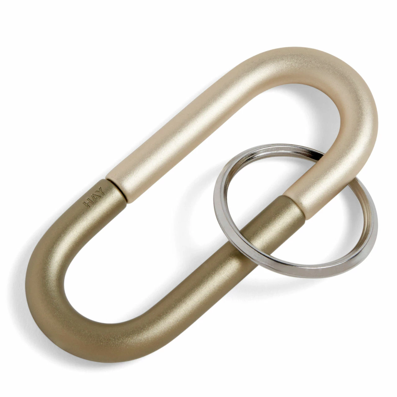 These loop form keyrings are made from aluminium by HAY and come in three different colour variations: black, olive green and red. Although the colours are listed like this each keyring is actually bi-colour.