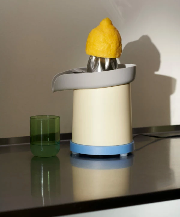 Featuring the same signature colours as the rest of HAY’s George Sowden kitchen collection, the Sowden Juicer brings function and colour to any kitchen. The electric design effectively squeezes citrus fruits, effortlessly providing fresh, pulp-free juice. Made in durable plastic and stainless steel, the Sowden Juicer is easy to disassemble and clean after use. W17 X L20.5 X H26.5. Polypropylene, stainless steel and silicone.