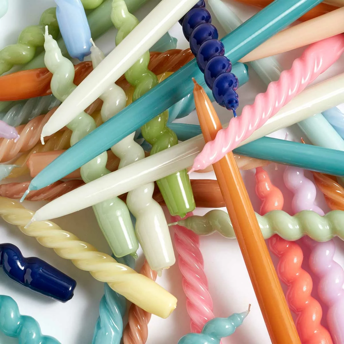 Mit ihren originellen Formen und ihrer umfangreichen Farbpalette sind die Kerzen von HAY nicht nur zum Brennen da; sie können auch selbst als dekorative Elemente verwendet werden. Sie werden in Italien hergestellt und sind in gedrehten und spiralförmigen Varianten in einer Vielzahl von Farben erhältlich. Größe: Ø 2,6 x Höhe 29 cm Inhalt: 6 Stück Farbe: Mint, hellgrau, grün Material: Paraffin Brenndauer: ca. 7 Stunden Dekorative Kerzen im 6er Set von HAY in verschiedenen Farben und Formen.