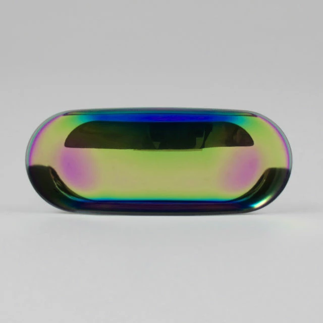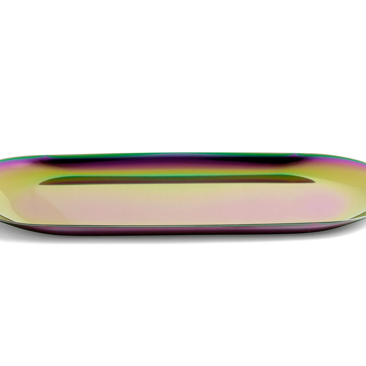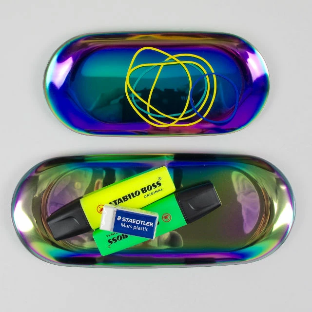 These stainless steel trays are designed by HAY and finished with a reflective surface that is multi coloured and changes in the light. They would make a great desk top addition – for the easy stowing of paperclips, rubber bands, keys etc. They are simply marked ‘Selected by HAY’ to the reverse. Each tray comes in a plastic display case.
