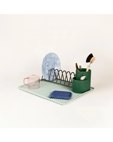A trio of functional design for drying dishes, Shane Schneck’s dish drainer includes a crinkled melamine tray, a sheet steel shelf and a silicone cutlery tray. The contrasting shapes, materials and colors add visual interest to this essential everyday kitchen.