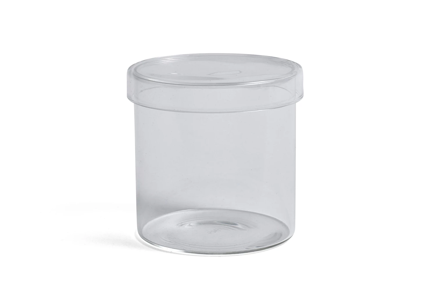 Hay’s rounded container is made of transparent, durable silicate glass and equipped with a lid. The glass jar can be used for storing small items in the kitchen, office, bathroom, etc. The jars are available in two sizes and three different tones.