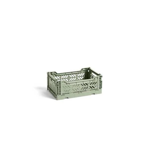 La cagette en taille S, couleur vert poudre de la marque Hay ♥ La cagette couleur vert poudre, taille S de la marque Hay. En plus d’être design, ces cagettes en polypropylène sont multifonctions. Elles ont un système d’aération, qui leur permettent de résister à l’eau. Repliables sur elles-mêmes, elles peuvent aussi bien s’empiler. Elles s’intègreront parfaitement dans toutes les pièces de votre intérieur et peuvent servir aux petits comme aux grands. Disponible en différentes couleurs et tailles, n’hésitez pas à les combiner. Découvrez toute la gamme de cagettes Hay. L’avis de l’Atelier Kumo : un indispensable pour organiser votre intérieur et un nouveau coloris qu’on adore ! Dimensions : longueur : 26,5 cm, largeur : 17 cm, hauteur : 10,5 cm Composition : polypropylène Poids : 180 g