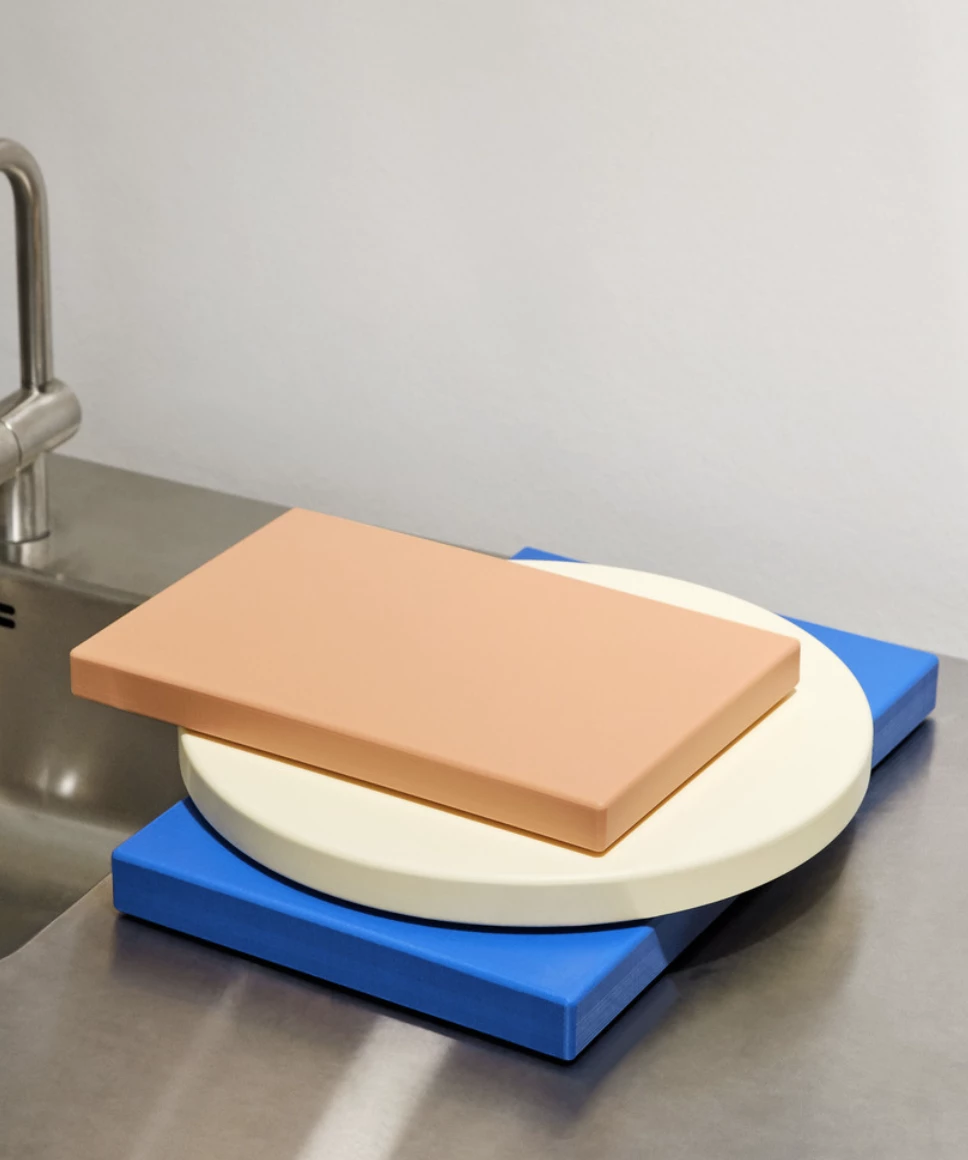 The Chopping Board from HAY is made of hygienic polyethylene with stay-put dots underneath for extra stability. Suitable for home use as well as industrial kitchens and available in more colors.