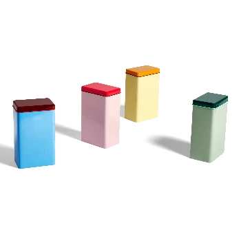 Designed by George Sowden for HAY, the Sowden Coffee Tin is a colourful tinplate container with an airtight lid that is suitable for coffee and other dry foods.