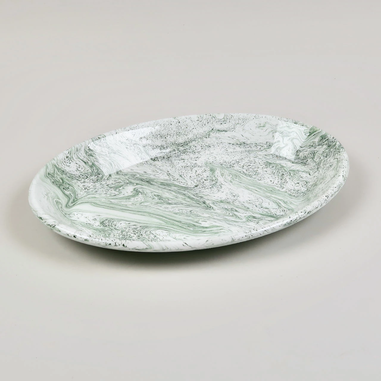 This enamel dish is from a new range by HAY. The enamelled steel has a green marbled pattern which differs across every piece that is made.