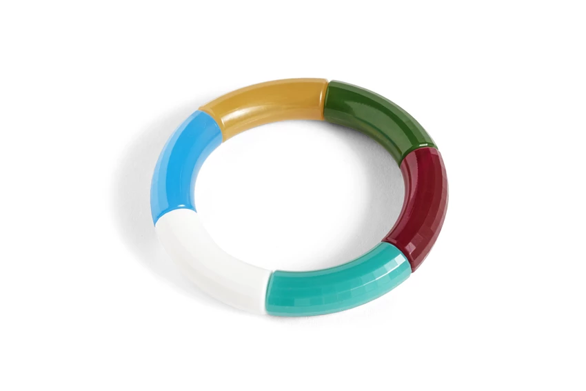 Kyoto Tango’s exclusive edition of colour-blocked resin bracelets for HAY fuses muted and strong tones to create a unique and versatile accessory. Designed and produced in Denmark, the bracelets are available in five different colour combinations that can be worn individually or stacked beautifully together.