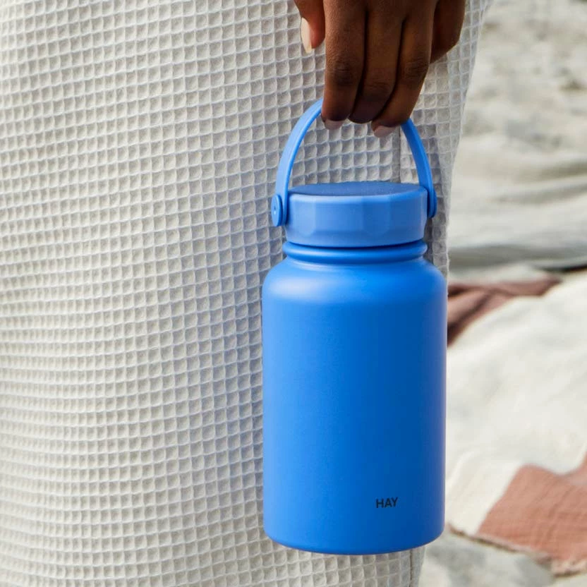 Die Mono Thermal Bottle von HAY ist ein wiederverwendbarer Getränkebehälter, der Flüssigkeiten heiß und kalt hält. Der praktische Griff und die weite Öffnung machen es besonders funktional, während die modernen Farben und klaren Linien einen ästhetischen Reiz verleihen. Hergestellt aus strapazierfähigem Edelstahl mit Kunststoffdeckel, ist Mono in verschiedenen Farb- und Größenoptionen erhältlich. Größe: Ø 9 x Höhe 17,5 cm Farbe: Himmelblau Material: Edelstahl, Silikon Füllmenge: 0,6 L Die perfekte Getränkeflasche to go – für heiß und kalt.