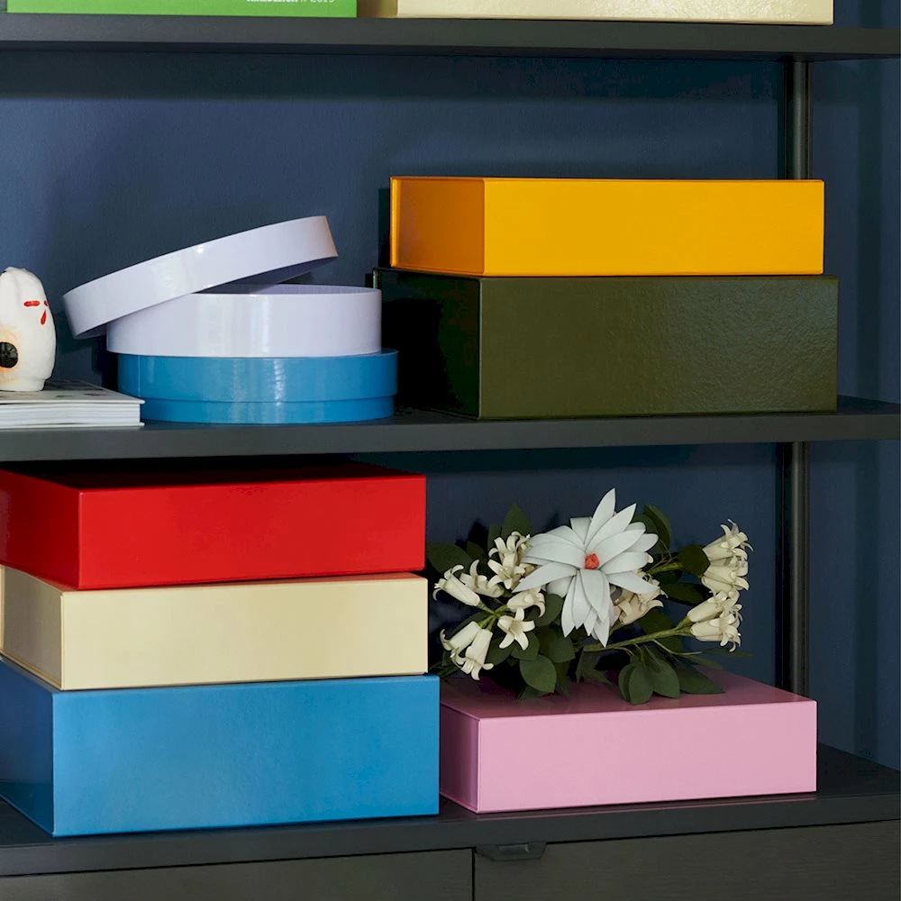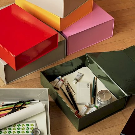 Color Storage è una serie di contenitori versatili e decorativi. Realizzate in un resistente mix di cartone certificato FSC extra spesso con una bella finitura lucida, le scatole rettangolari possono essere utilizzate per organizzare e riporre un’ampia gamma di oggetti su scrivanie, scaffali o armadi. Disponibili in diversi colori, le scatole possono essere impilate in espositori colorati. la chiusura avviene con una calamita interna
