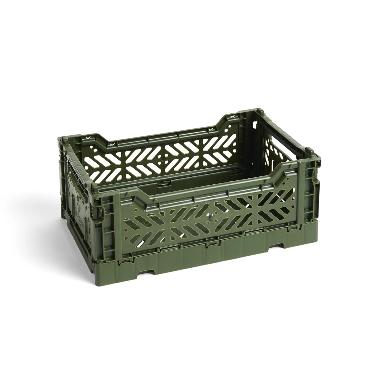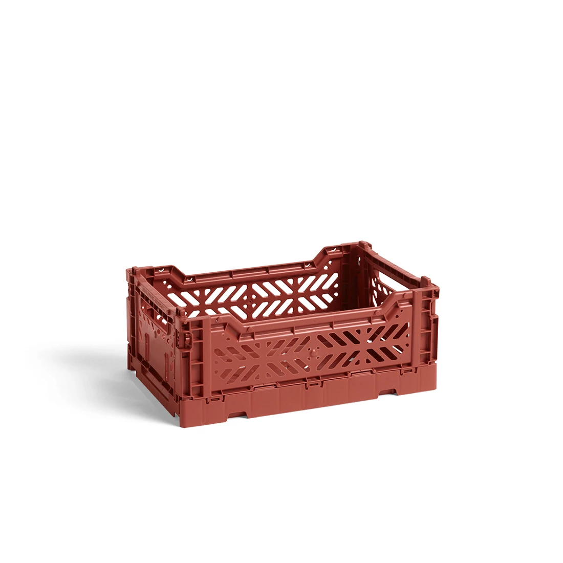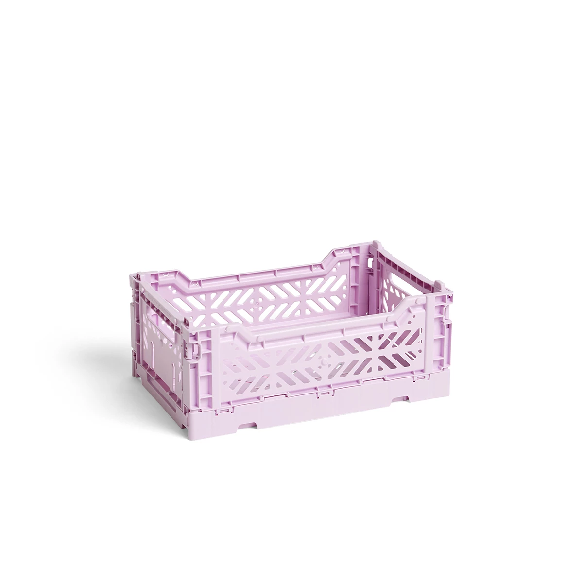 The propylene colour crate by HAY are a fun multifuncional crate ventilated and stackable.