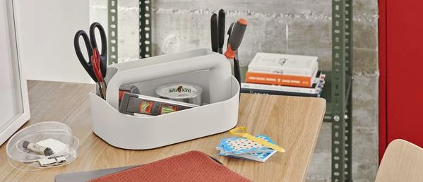 Designed by Shane Schneck, The Hay Toolbox is a handy and practical, plastic storage box that looks equally stylish on the desk as well as in the bathroom or kitchen. Use to store pens and calculators; bath products or oils and vinegars, this neat home for all your paraphernalia allows you to lift and go whenever necessary. L30.5 X W21 X H14.5
