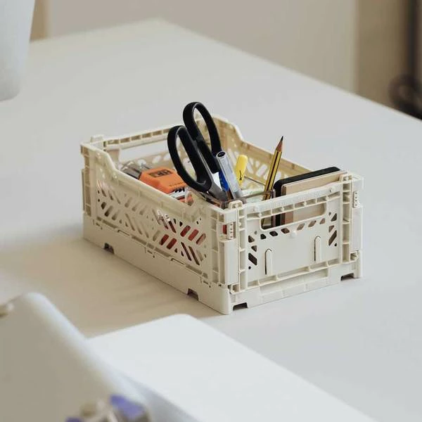 La cagette en taille S, couleur blanche de la marque Hay ♥ En plus d’être design, ces cagettes en plastique sont multifonctions et ont un système d’aération, qui leur permet de résister à l’eau. Repliables sur elles-mêmes, elles peuvent aussi bien s’empiler. Elle peuvent servir aux petits comme aux grands. Disponibles en différentes couleurs, n’hésitez pas à les combiner. Découvrez toute la gamme de cagettes Hay. L’avis de l’Atelier Kumo : Un indispensable pour organiser votre intérieur Dimensions : Longueur : 26,5 cm, largeur 17, hauteur : 10,5 cm Composition : Plastique