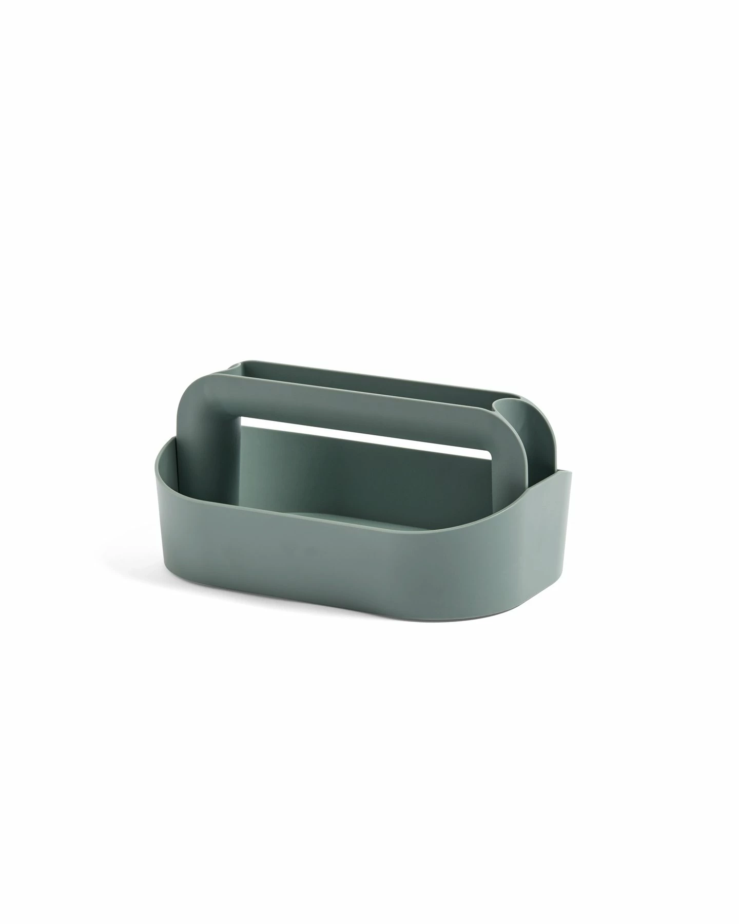 La práctica caja de herramientas de plástico está diseñada por Shane Schneck con compartimentos adicionales a los lados y en la parte superior del asa para optimizar el espacio de almacenamiento.