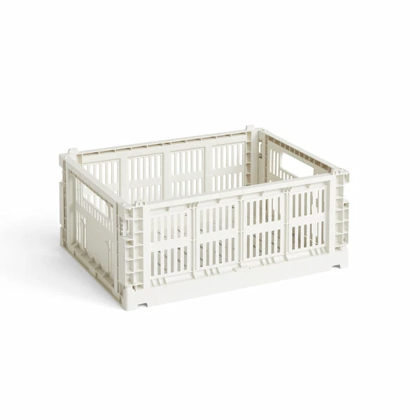 HAY Colour Crate is a series of colourful storage boxes with a distinctive, perforated design. Made from 100% recycled post-consumer plastic waste in a variety of different colours and sizes, the crates can be stacked on top of one another in different size combinations. The multifunctional crates are suitable for storing and organising a wide range of items on shelves, tables or inside cupboards. W26.5 X L34.5 X H14 cm