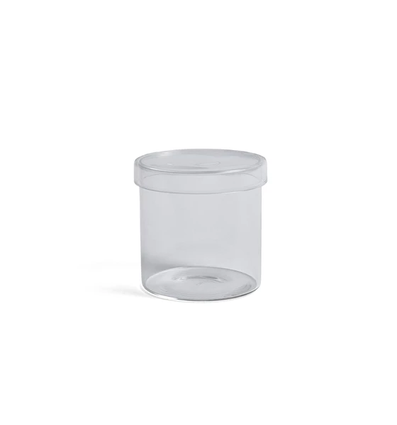 A simple and practical glass jar with a matching lid, designed for organising and storing small items. 7 x 7.5 cm Material: Glass