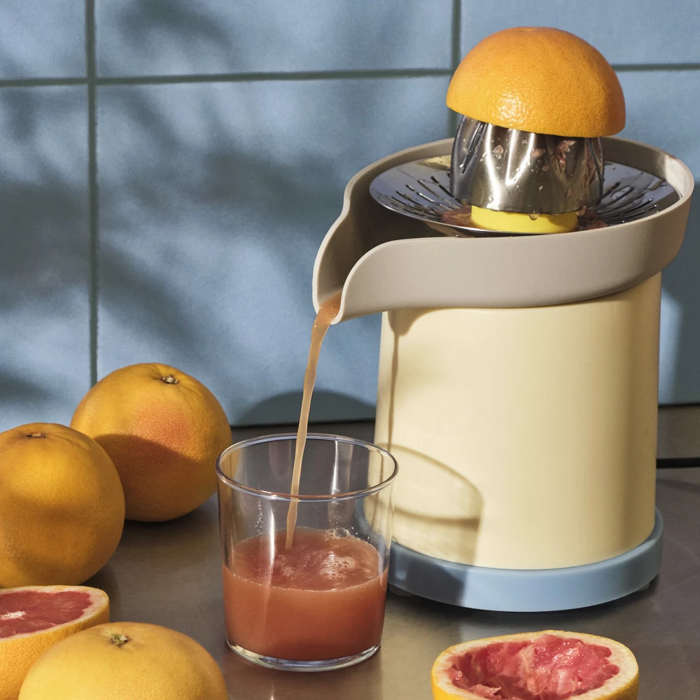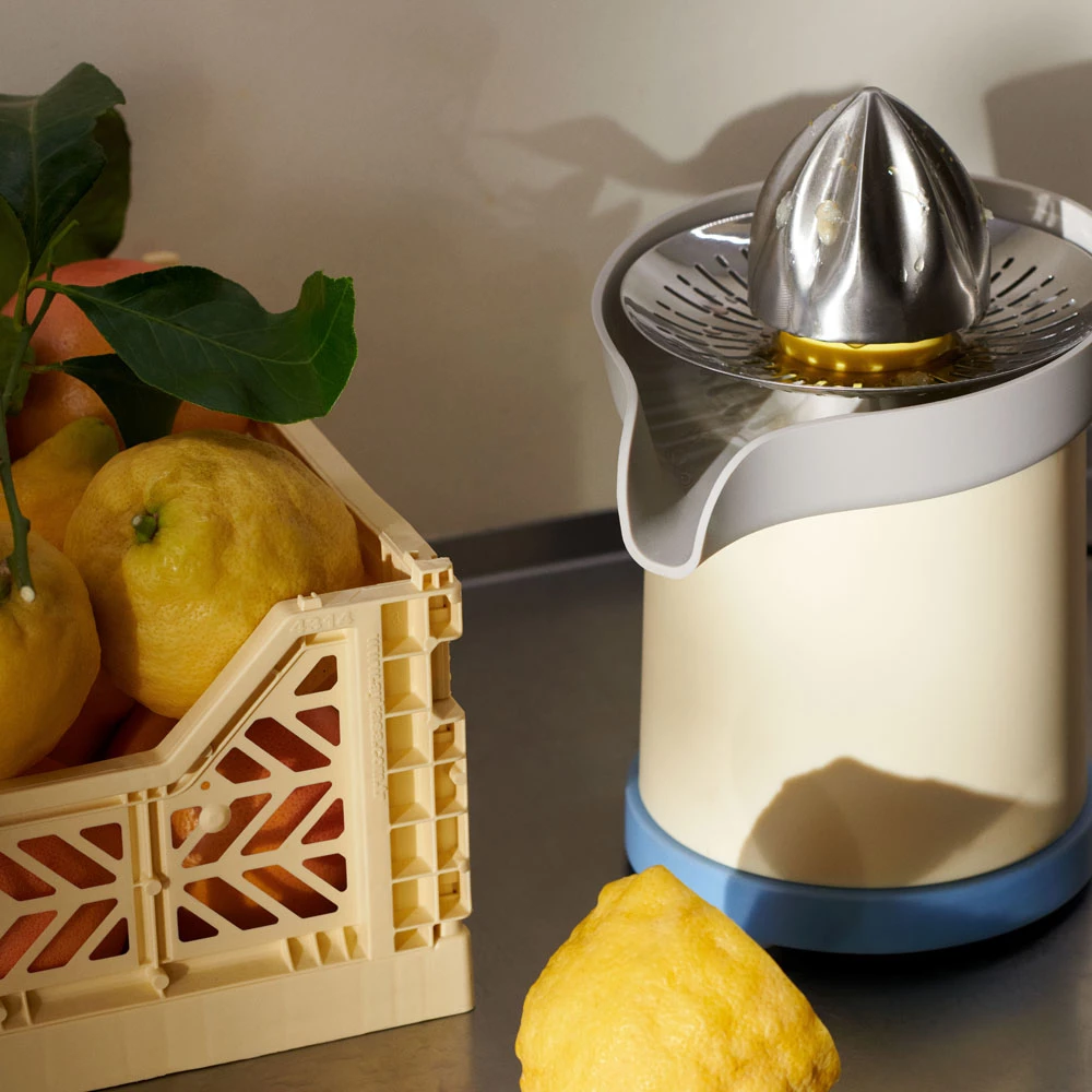 A charming juicer in fresh pastel hues, designed by George Sowden for HAY.