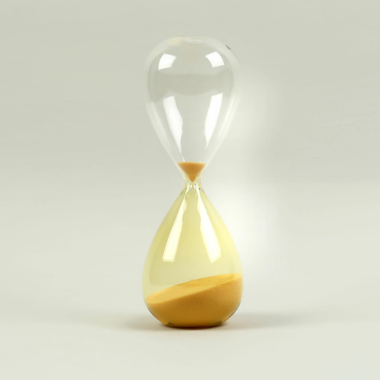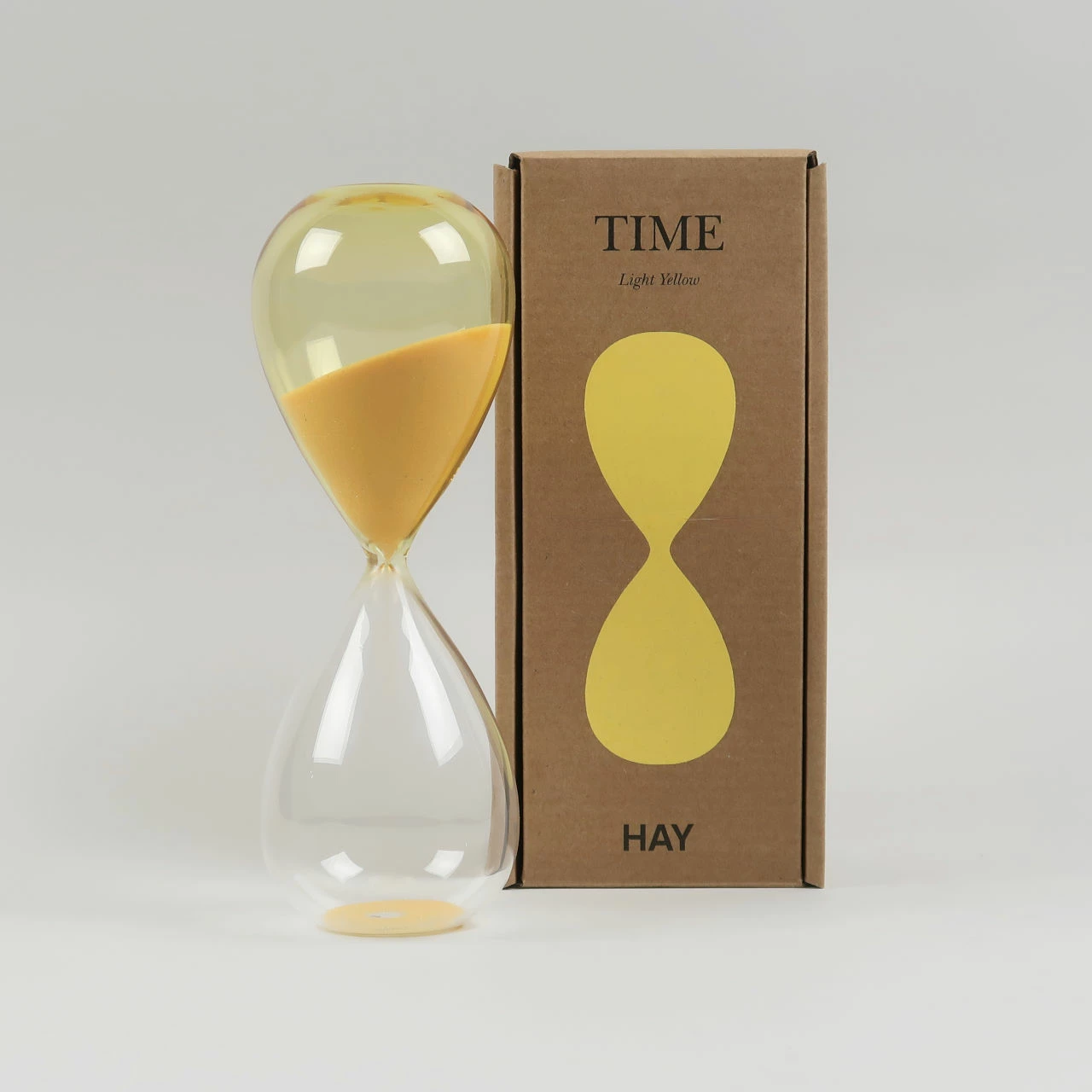 This timer is the oversized sibling of the medium and small timers by HAY that we also stock. It takes 30 minutes in this size timer for the sand to fall from one end of the timer to the other.