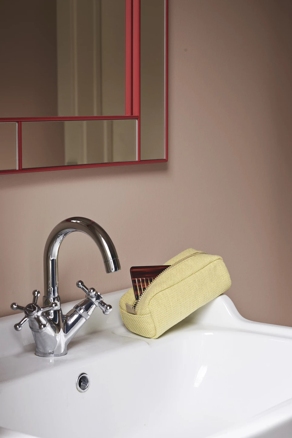 Designed for storing makeup and other beauty products, the Hue Makeup Bag is made from Mode fabric from Maharam and features a plastic lining and a sturdy zip closure. Available in different colours.