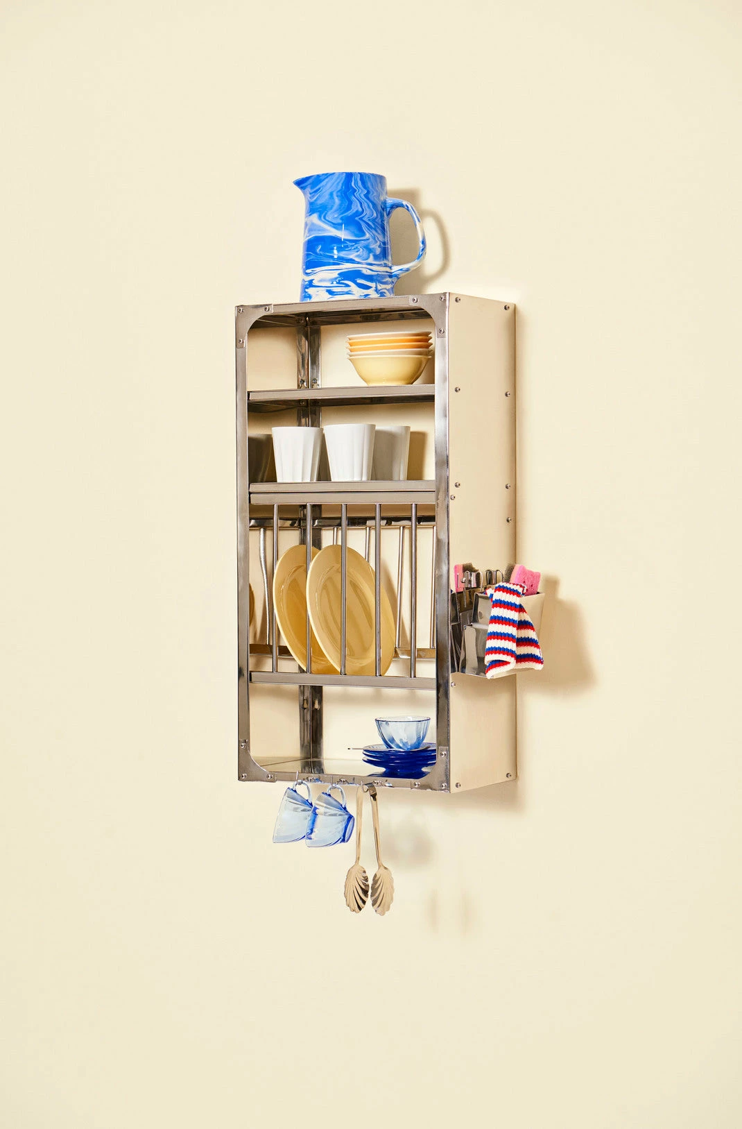 HAY’s Indian Plate Rack is made in strong and durable stainless steel. The compact and fuss-free design is easy to mount on a wall and features a variety of shelves and compartments for storing cutlery, crockery and other kitchen utensils. Materials: Stainless Steel Dimensions: W40 X D24 X H78.5 Delivery: In Stock