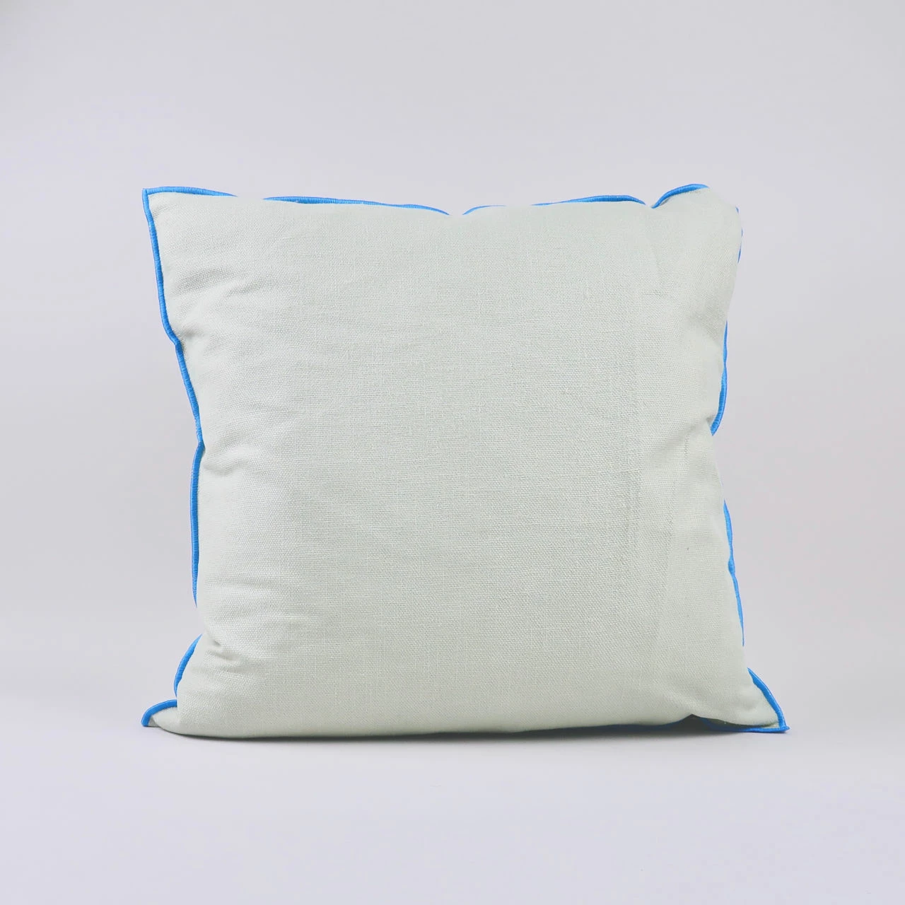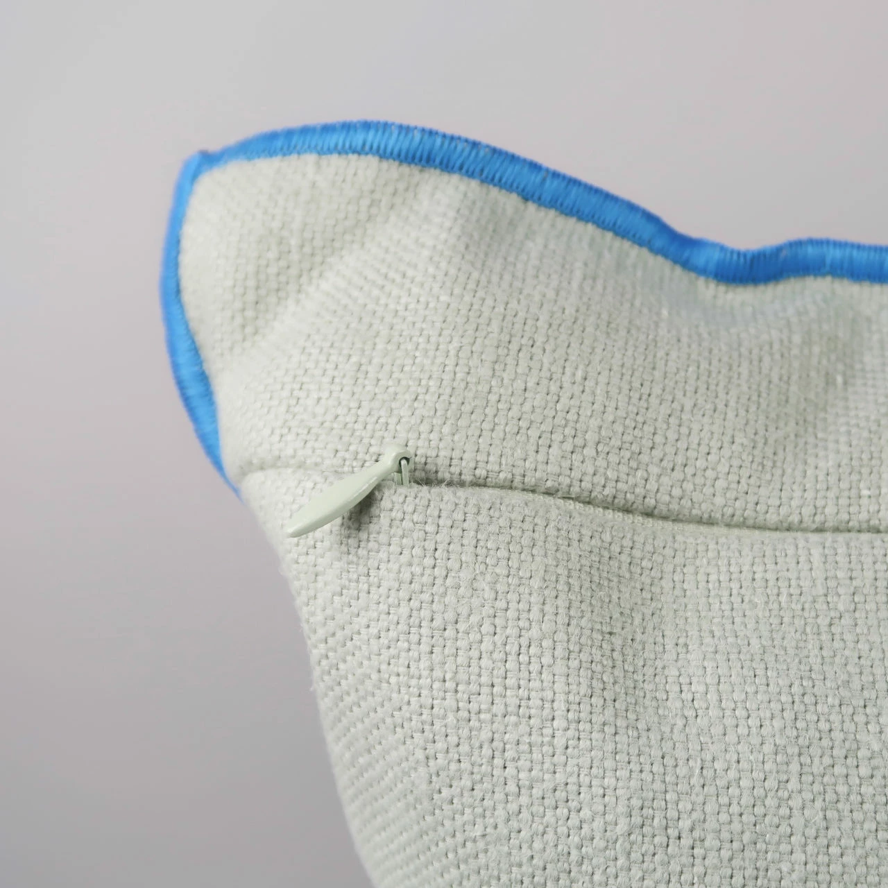 This cushion is made by HAY and the external fabric cover is a 75% linen, 25% cotton mix. It has a hidden zip closure on the reverse of the cushion with a colour matched zip and a small discrete HAY logo tag on the reverse as well.