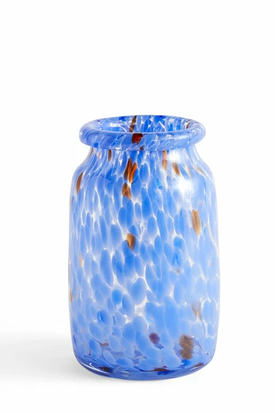 WHY WE LOVE: Celebrating traditional glassblowing techniques this vase brings colour and joy into any space Using specialised handblown glass techniques, this vase is entirely made from hand by creating multiple layers of coloured glass dots to achieve the unique swirl feature. Use as a decorative piece on its own or display with flowers to further highlight the splashes of colour. Dimensions: Ø14.5 X H22.5 Material: Glass