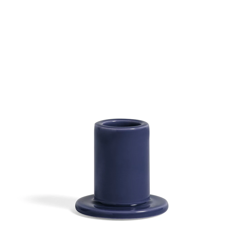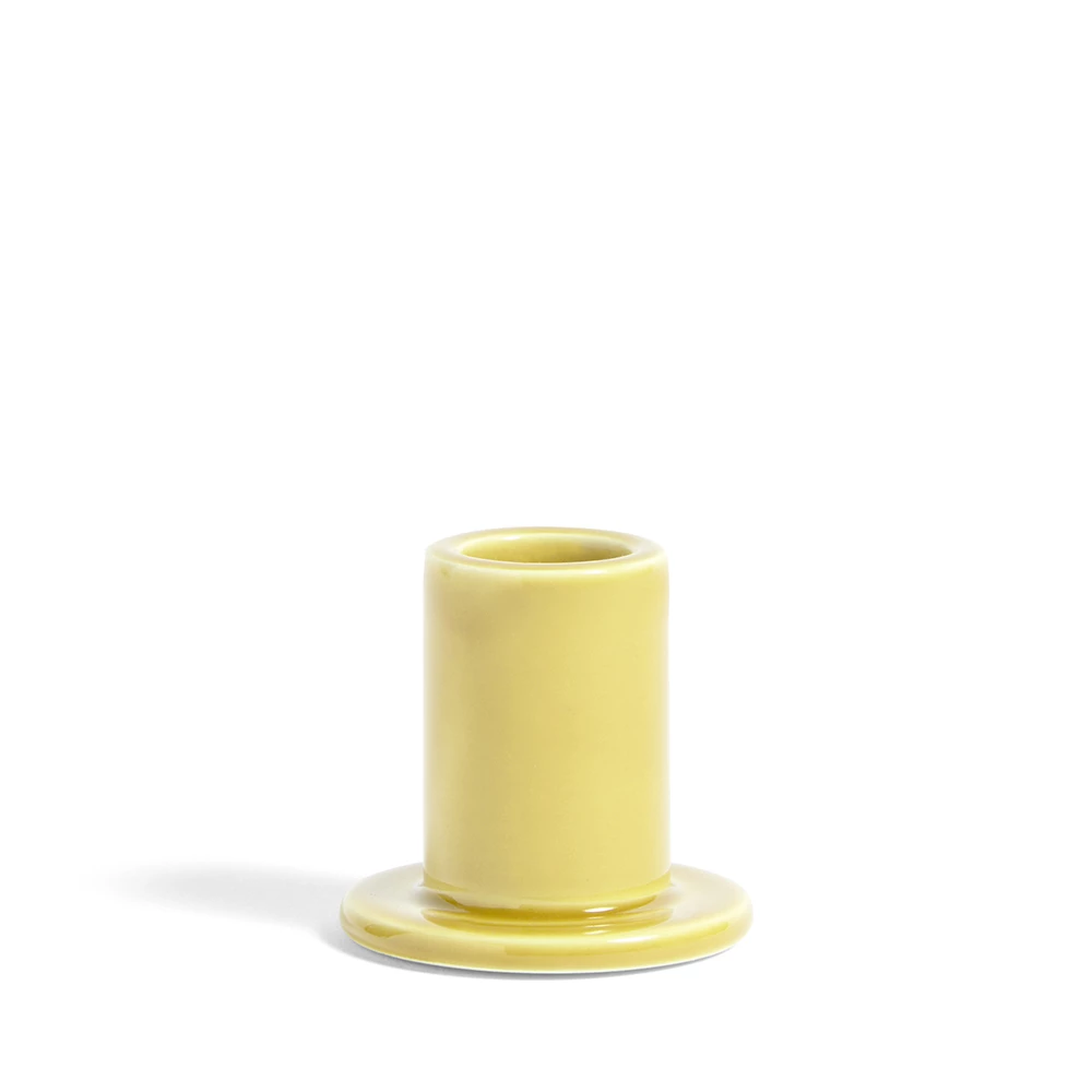 Portavelas HAY de loza con un esmalte semitransparente en colores suaves. Diseño tubular con una base que recoge la cera. Bello y minimalista, queda bien combinado con otros colores y/o tamaños y también sólo.