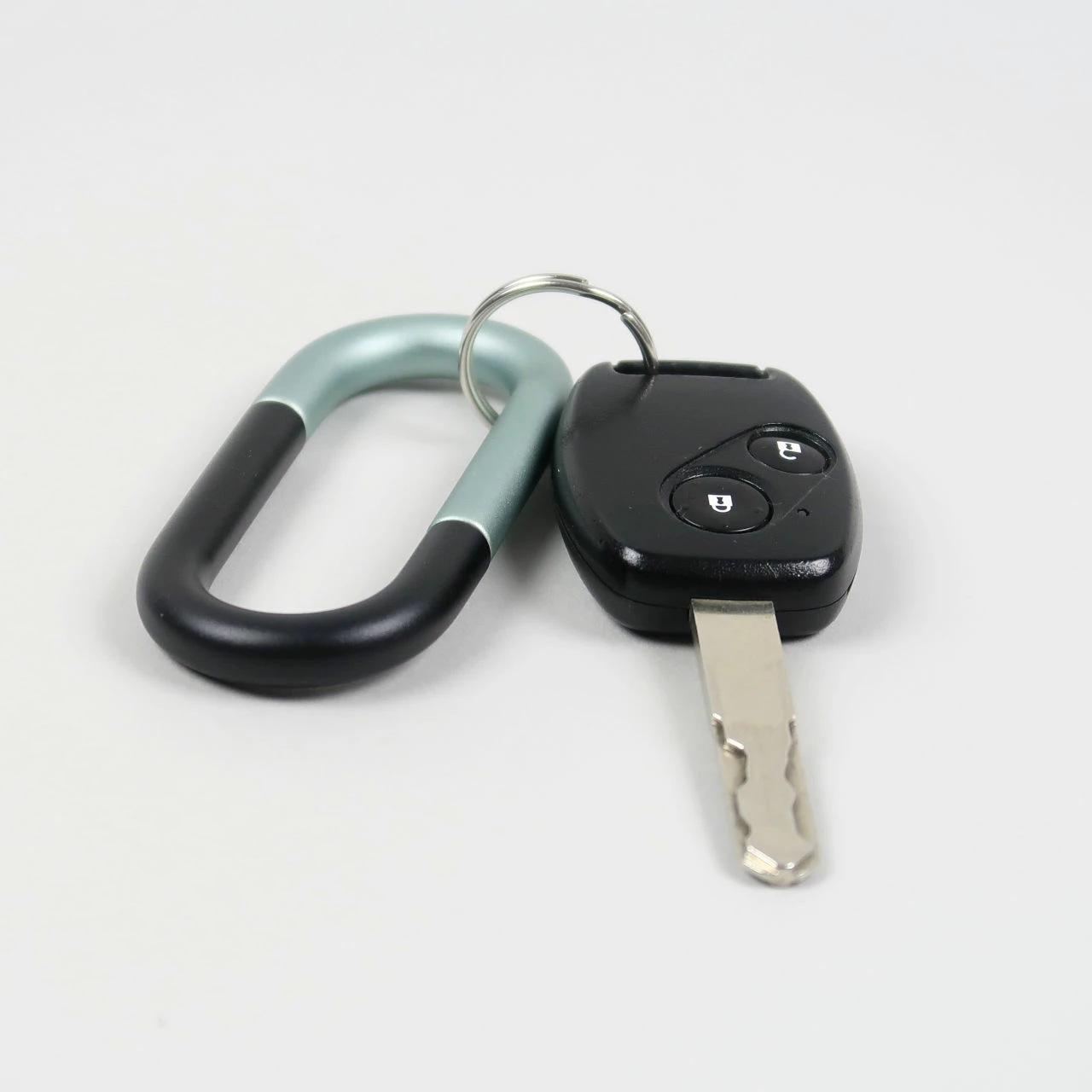 The black one is black and a steely blue, the red one is a magenta red and light blue (if it were a football team kit it would be Aston Villa) and the olive green one is green and gold. To open the keyring and either add or remove keys you simply pull each end of the loops and the they come apart where the different coloured pieces meet, you then swing one part around, add you keys (you may need a separate jump ring) and then re-close the two coloured sections. It operates a bit like a carabiner in this regard.