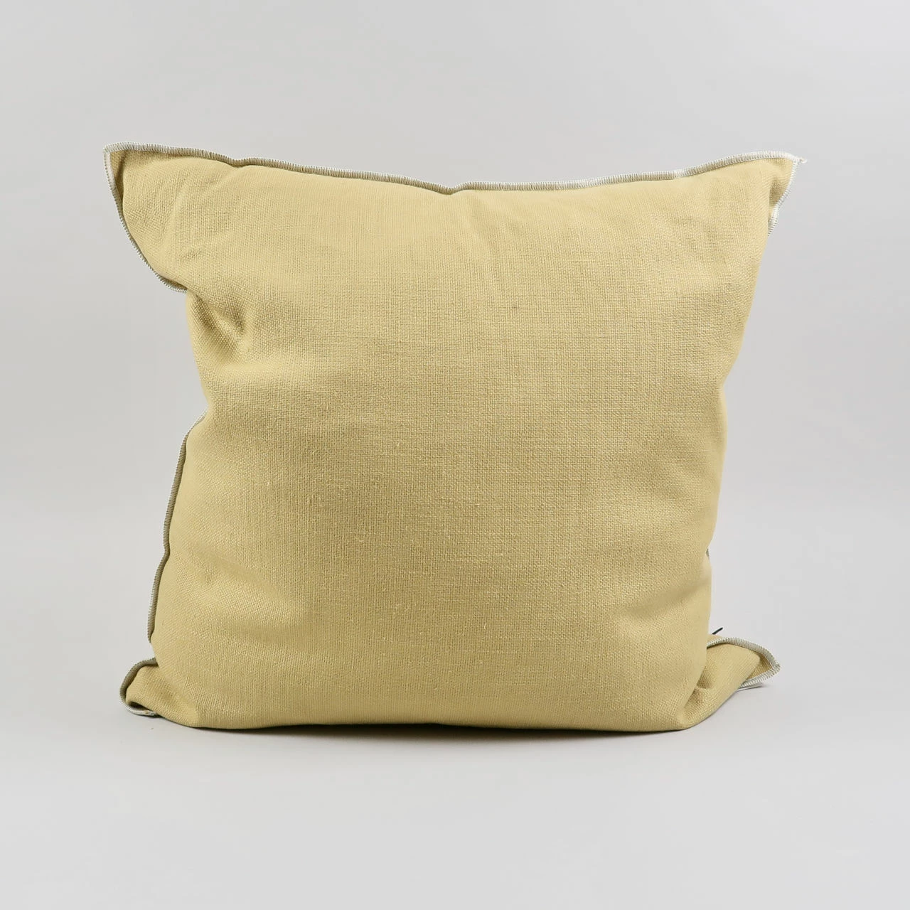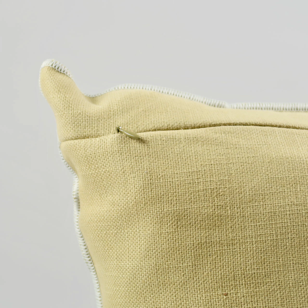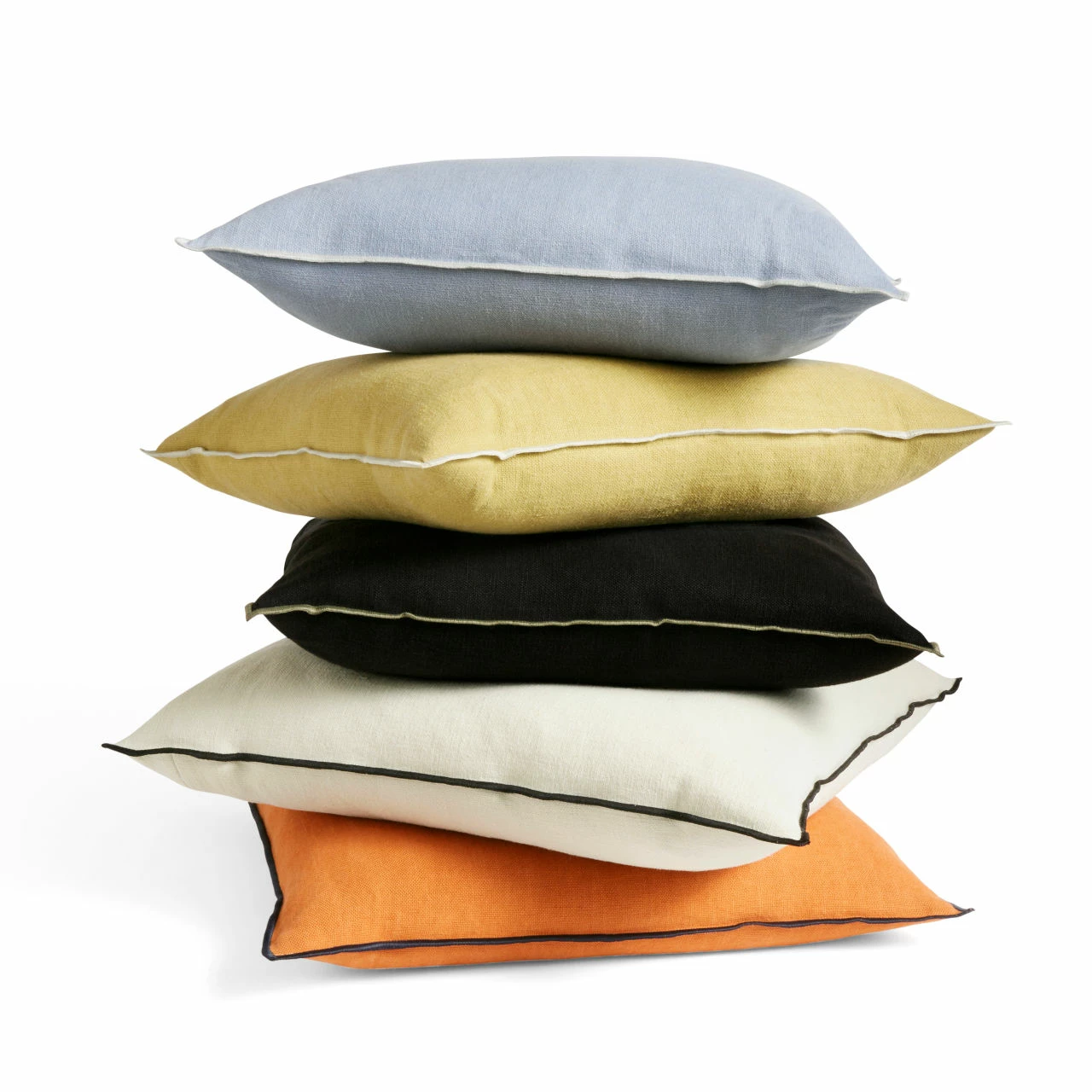 This cushion is made by HAY and the external fabric cover is a 75% linen, 25% cotton mix. It has a hidden zip closure on the reverse of the cushion with a colour matched zip and a small discrete HAY logo tag on the reverse as well.