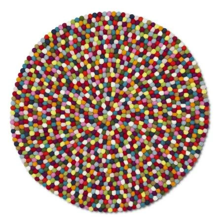 Carpet made with 100% wool felt balls, sewn by hand in Nepal. It is not exclusively childish but it is perfect for the children’s room or its playground.