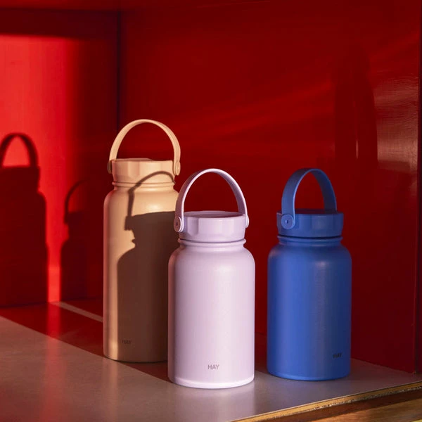 La bouteille isotherme couleur lavande de 0,6 L de chez Hay. Pratique avec sa grande poignée et sa large ouverture, elle deviendra un indispensable du quotidien. Café, thé, soupe conserveront leur saveur et seront maintenus à température idéale. Conçu en acier inoxydable, sa anse est en silicone et le bouchon à vis en polypropylène. Elle se glissera facilement dans une poche ou à l’arrière de votre sac à dos. Ce thermos existe également en bleu ciel. L’avis de l’Atelier Kumo : garder au chaud ou au frais toutes vos boissons favorites ! Dimensions : diamètre : 9 cm, hauteur : 17,5 cm Composition : acier inoxydable, polypropylène et silicone Couleur : violet clair Contenance : 0,6 L Poids : 0,357 kg Conseil : conviens pour les boissons chaudes et froides.