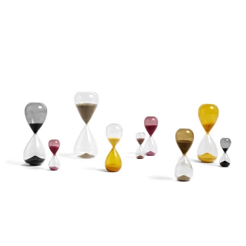 The hourglass by hay brings aesthetic and functionality perfectly in line. The soft, rounded shapes make the timepiece to a true design object, which provides an absolute eye catcher at the office or in the kitchen, whether as a mere object of decoration or as a practical timepiece when cooking or working. The dyed glass ensures gentle colour accents, which is complemented by the sand in different colours. Perfect for in the kitchen or even as a display piece sat upon a shelf. Run down time: 15 minutes. Contains fine sand. Material: Glass. Care: Wipe clean with a damp cloth.