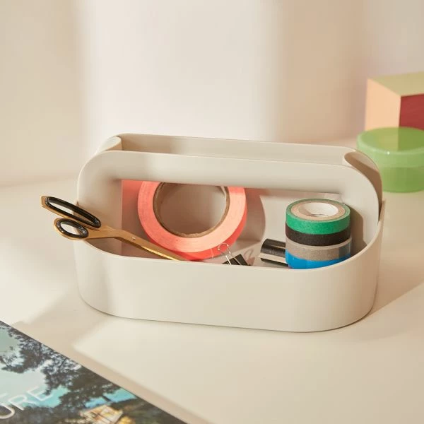 Questa ToolBox di Hay è realizzata in plastica resistente e perfetta per contenere tantissimi accessori, sia in giardino sia in ogni angolo della tua casa. Dotata di una comoda maniglia, è organizzato per massimizzare lo spazio disponibile. SPECIFICHE Colore: Grigio Chiaro Misure: 30 x 21 x h14.5 cm Materiale: Plastica ABS