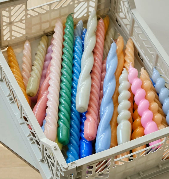 Ahora en versión larga! Con sus formas originales y su extensa paleta, las velas de HAY no son solo para quemar; se pueden utilizar como elementos decorativos en sí mismos. Fabricados en Italia, vienen en variantes retorcidas, cónicas o espirales en una amplia gama de colores. Ø2.6 X H29 Parafina Duración encendidas 7 horas.