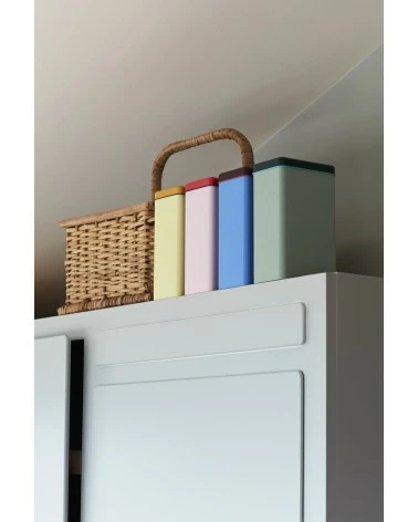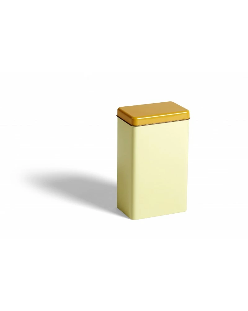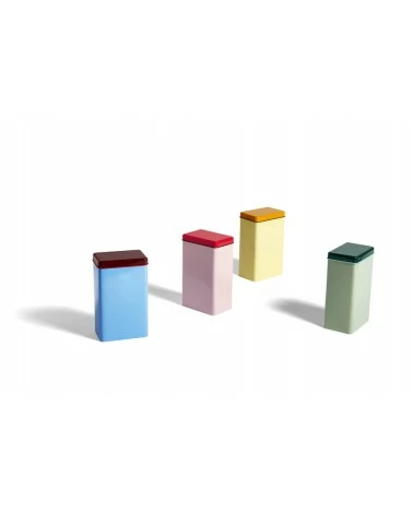 Designed by George Sowden, the Sowden Tin Can is a colorful tin can with an airtight lid suitable for coffee and other dry foods.