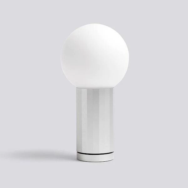 La lampe à poser Turn On en aluminium, par Joel Hoff, Wrong pour la marque Hay ♥ La lampe à poser Turn On en aluminium, par Joel Hoff, Wrong pour la marque Hay. Une belle association de matériaux, ici la sphère est en verre opale et la base cylindrique à facettes en aluminium. Cette lampe de table Turn On forme une unité minimaliste avec un design qui s’intégrera parfaitement dans vote intérieur. En tournant la base, la lumière se diffuse, plus on allonge la rotation plus le flux lumineux augmente. Ce mouvement intégré au design accentue et reflète les nuances de couleurs de votre intérieur à travers un jeu d’ombres et de lumières. La source de lumière est une LED intégrée, accompagné d’un variateur de lumière rotatif permettant d’ajuster le flux lumineux en fonction de vos activités. L’avis de l’Atelier Kumo : une jolie lampe au design rétro que l’on adore ! Couleur : aluminium Matériaux : aluminium moulé sous pression, verre opale soufflé Dimensions : hauteur : 19,5 cm, diamètre : 10 cm Source de lumière : LED intégrée Dimmable : oui Poids : 3 kg Câble : 2 mètres