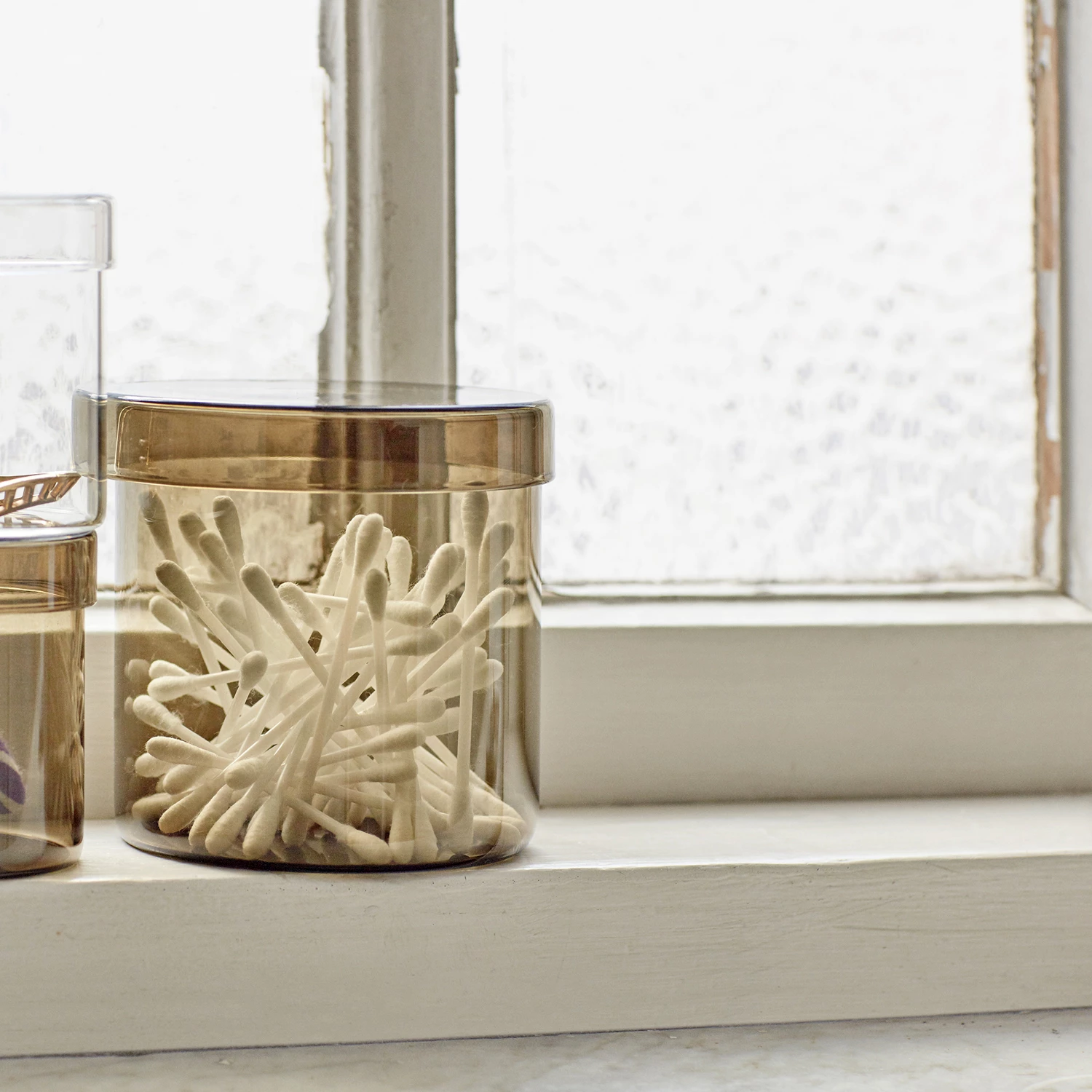 The HAY Container is a beautiful and practical glass jar with a matching lid, designed for organising and storing small items.