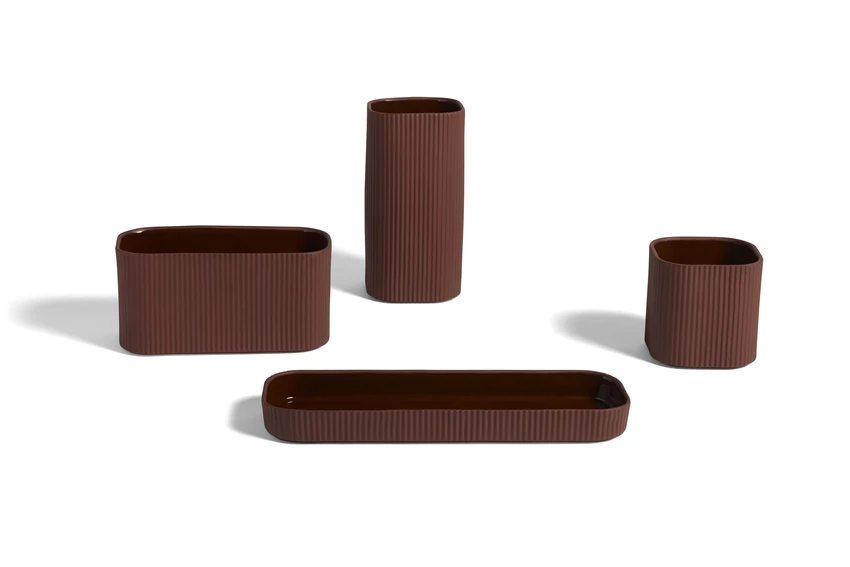 The Facade series from COBE and KILO Design shares the same smooth, rippled surface of a sparse garden village and is designed for growing herbs or small plants and for home decoration. Made of terracotta with an unglazed exterior and glazed interior that create a natural look and healthy growing environment, the items in the collection can be used alone or together.