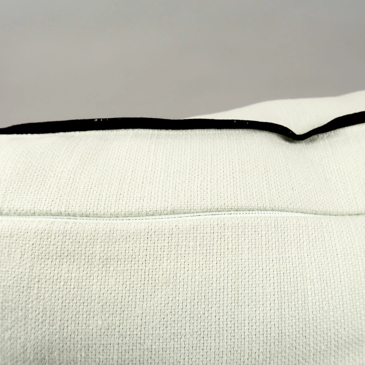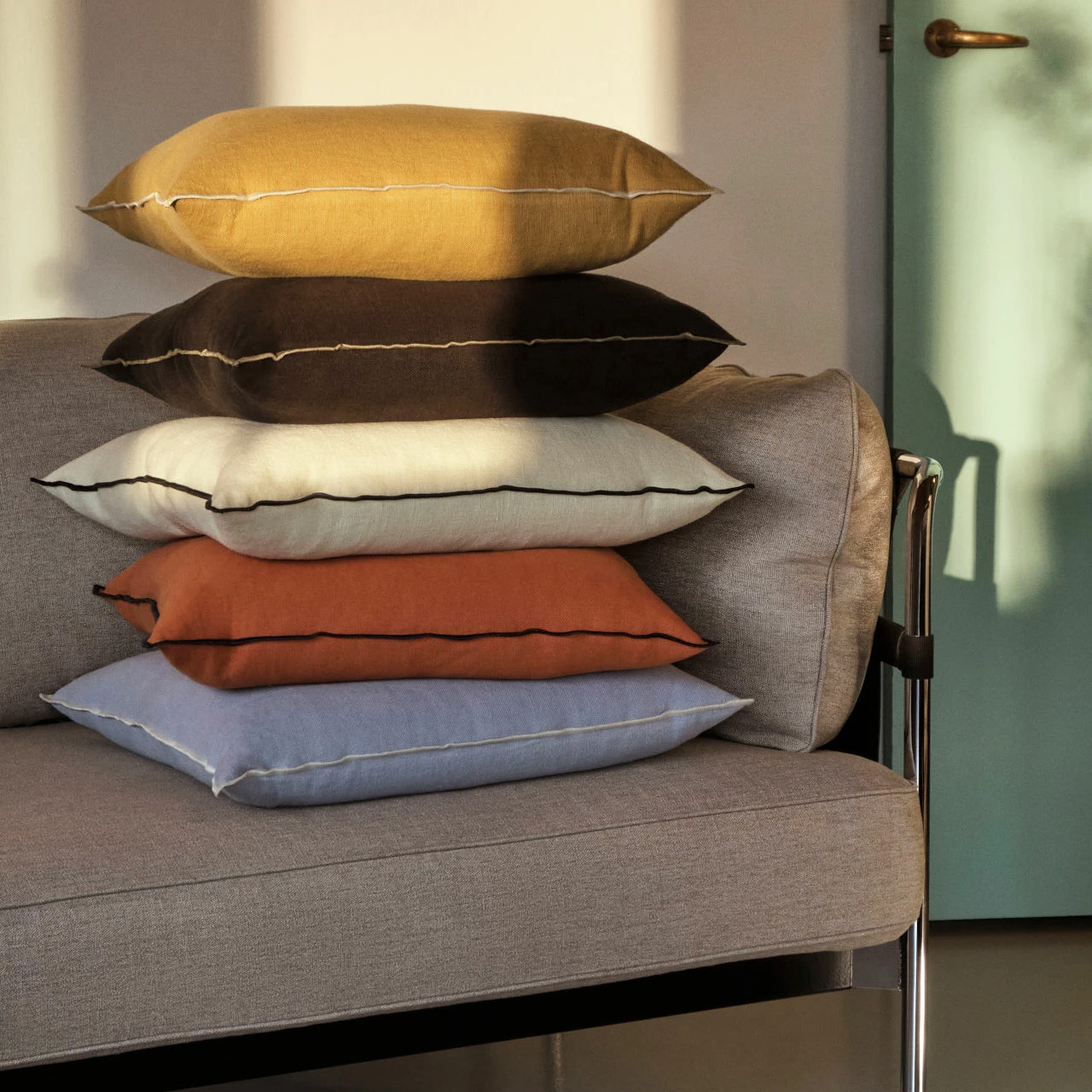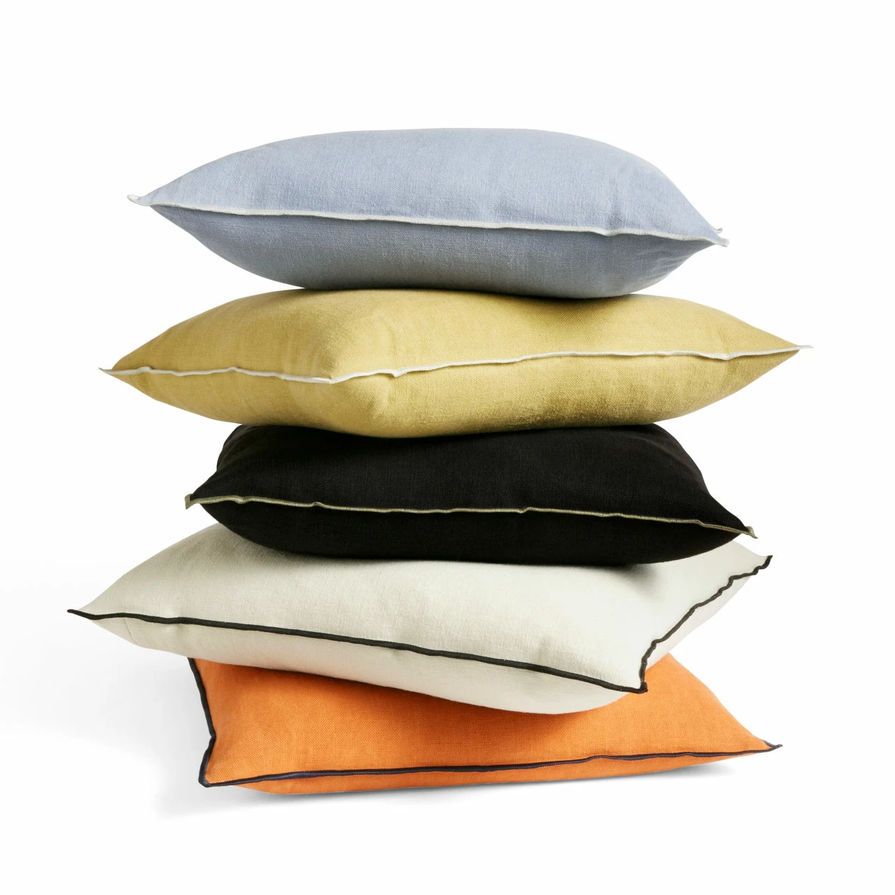This cushion is made by HAY and the external fabric cover is a 75% linen, 25% cotton mix. It has a hidden zip closure on the reverse of the cushion with a colour matched zip and a small discrete HAY logo tag on the reverse as well.