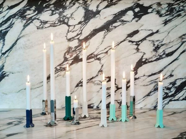 De artistieke Arcs kandelaar is ontworpen door het Belgische designduo Muller Van Severen. De verticale bogen sluiten zich als een ketting om de kaars en geven een elegant silhouet. De zware kaarsenhouder is verkrijgbaar in verschillende kleuren en formaten, mix & match! Materiaal: Aluminium en staal Afmetingen: Ø 5.5 x H 9 cm Kleur: spiegel