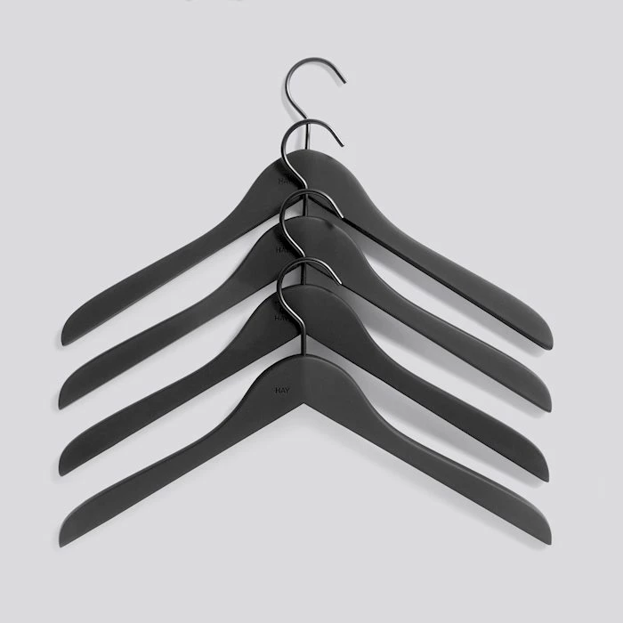 Soft Coat Hanger is a wooden hanger with broad shoulders and a matt rubber surface that provides added friction to keep coats and jackets in place.
