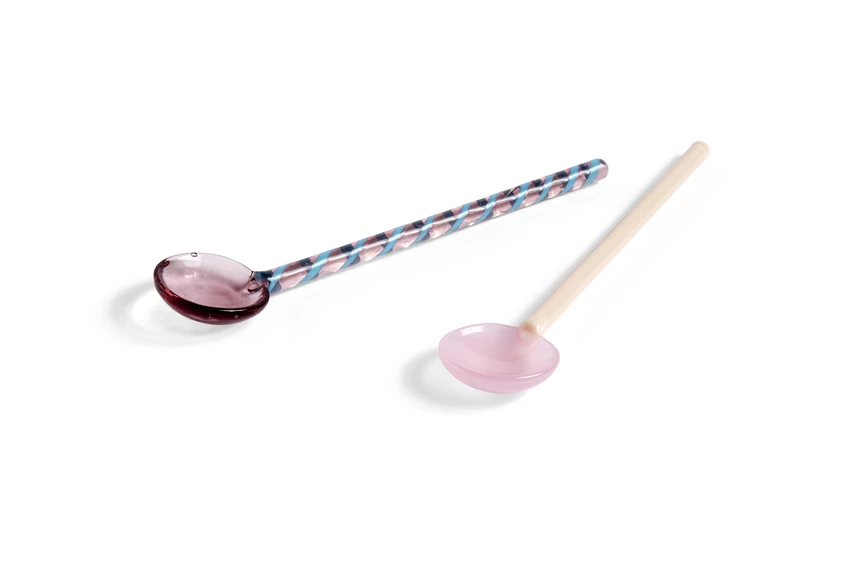 HAY’s collection of Glass Spoons add a decorative twist to a kitchen essential. Handmade in elegant designs offering different colours, sizes, and shapes, the spoons can be used for spices, salt, tea/coffee, or purely for decoration. This light pink and aubergine set of 2 comes boxed.