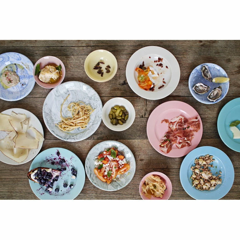 HAY’s Rainbow Plate series is made from durable porcelain with a slightly translucent coloured lacquer. Please note that colours may vary slightly from item to item due to the way they are glazed in production. This adds an individual, handmade feel to each item and creates greater depth of colour when used as a collection. Dishwasher safe.
