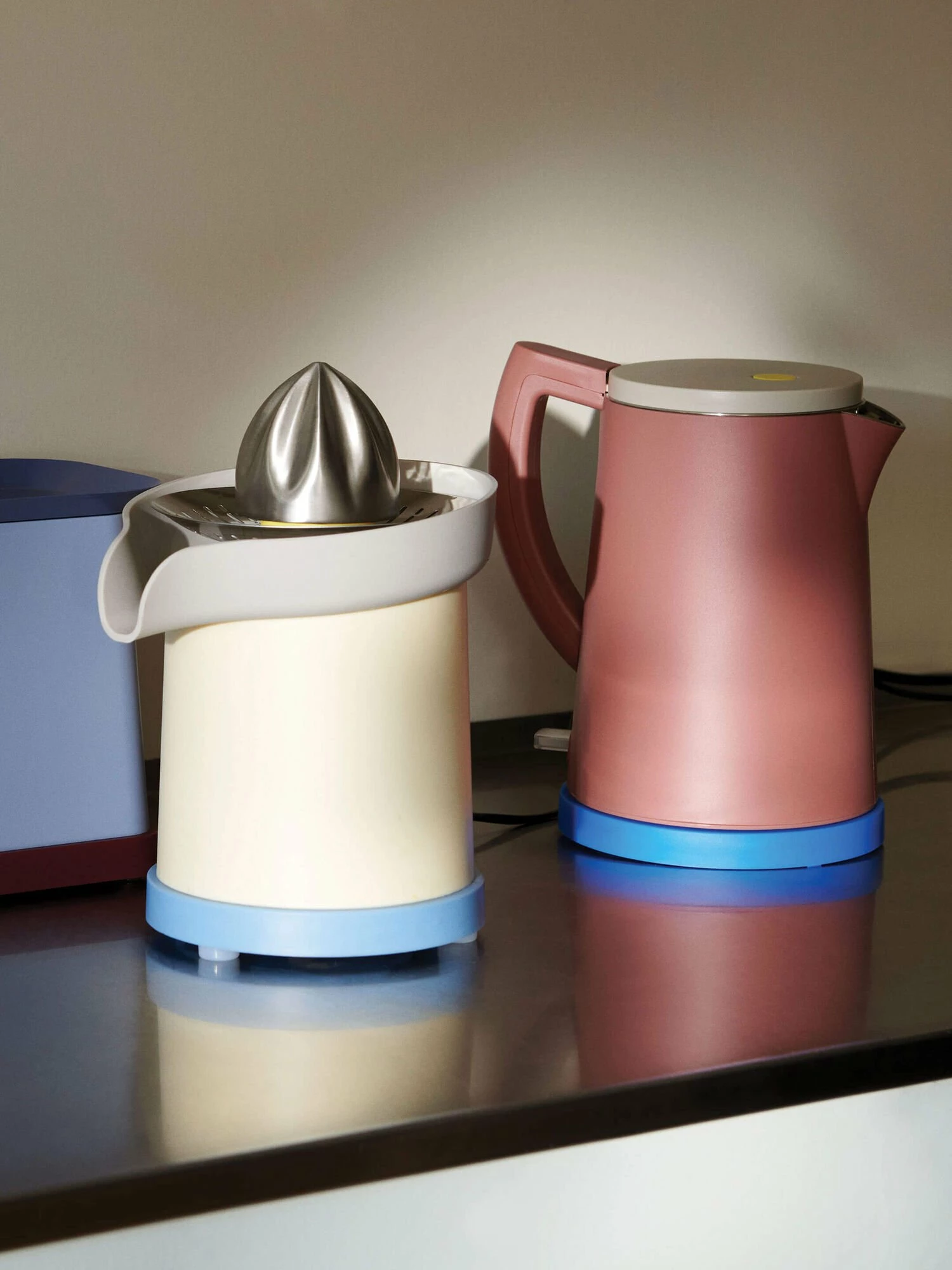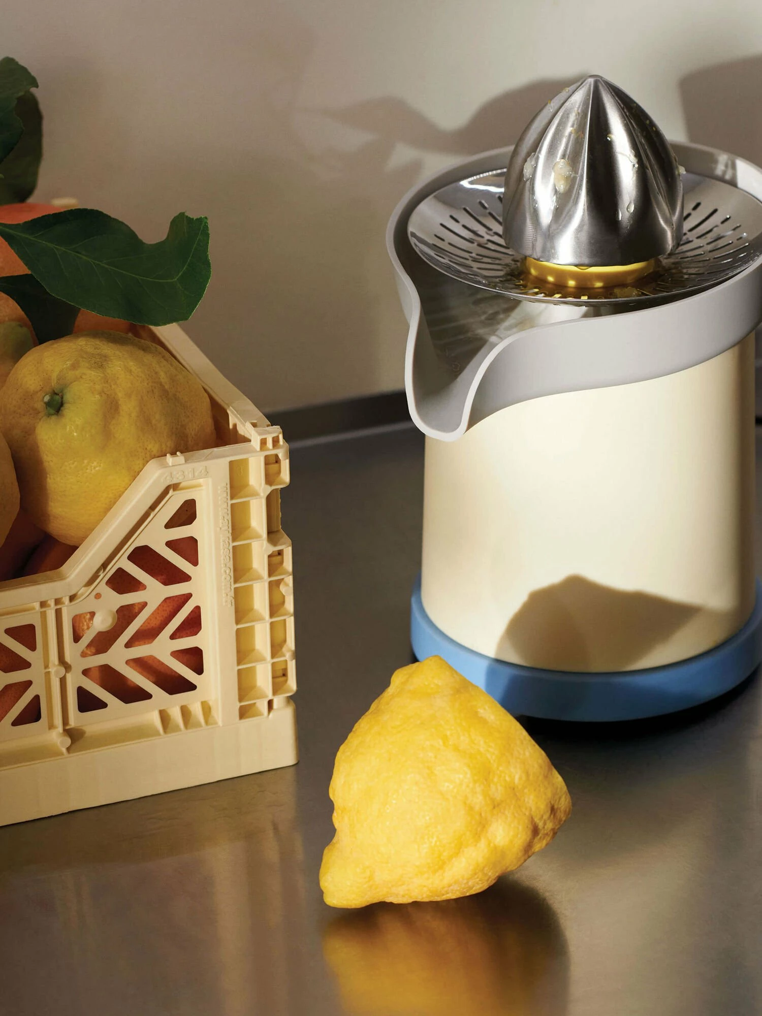 Featuring the same signature colors as the rest of HAY’s George Sowden kitchen collection, the Sowden Juicer brings function and color to any kitchen. The electric design effectively squeezes citrus fruits and effortlessly delivers fresh, pulp-free juice. The Sowden Juicer is made of durable plastic and stainless steel and is easy to disassemble and clean after use.