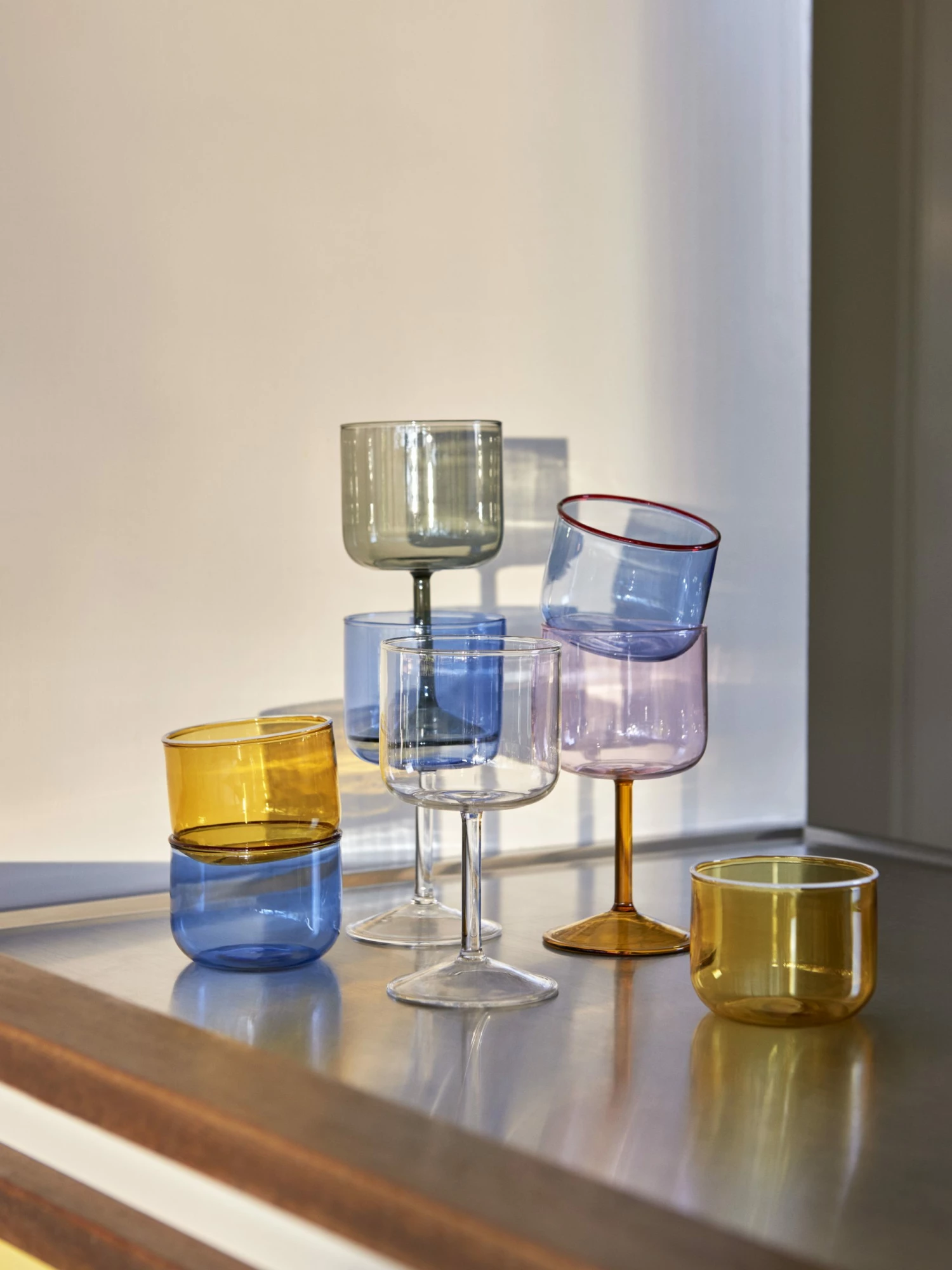 This Set of 2 Clear Tint Wine Glasses come from a collection of HAY wine glasses made in tinted and clear borosilicate glass. The elegant, simple design is suitable for serving wine, as well as water, juice and other soft drinks. The glasses come in sets of two.
