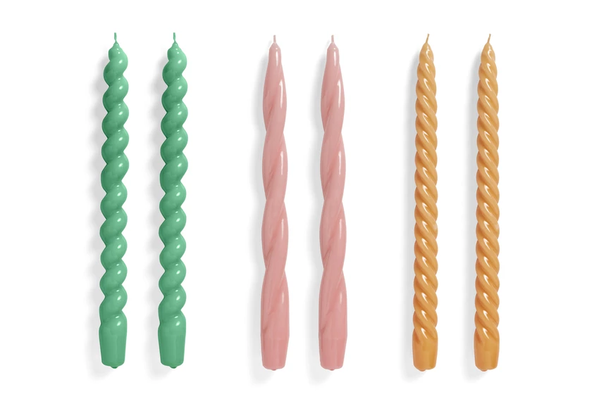 With their original shapes and extensive palette, HAY’s Candles aren’t just for burning; they can be used as decorative elements in themselves. Made in Italy, they come in twisted, conical, or spiral variants in a wide range of colours. This set has two of each colour: green, rose and tangerine and come in a box. Pair with a colourful candleholder for a bright, funky look.